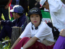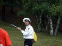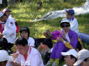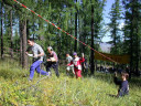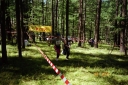 スタートまでずいぶん時間があり、選手は森からでたところで草原の風に吹かれて待機していました。