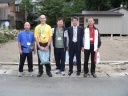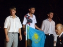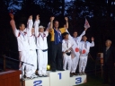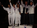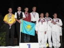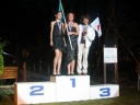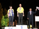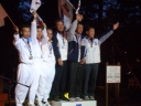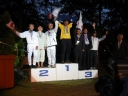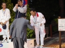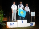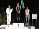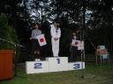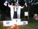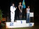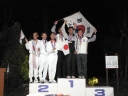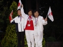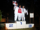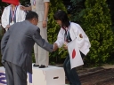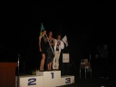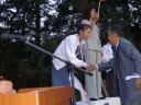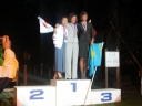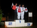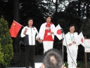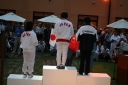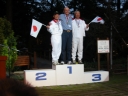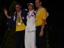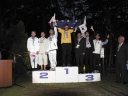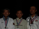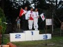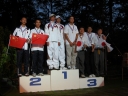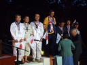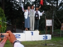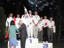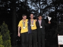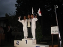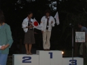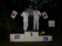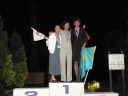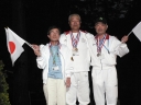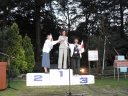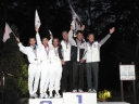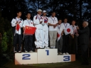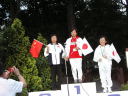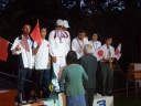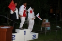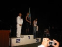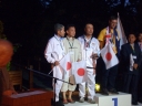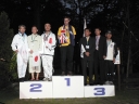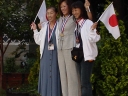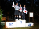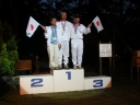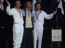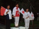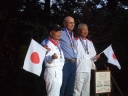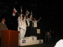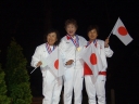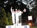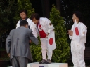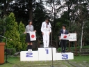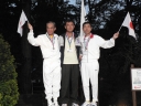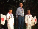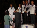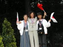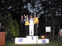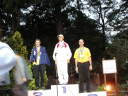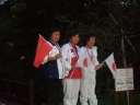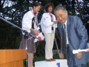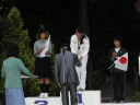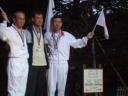 表彰台は団体表彰で使えるようにと、三名がのれるモノが指定でした。