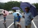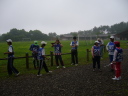 ゴール後雨脚が強くなり、選手は雨宿りでした。