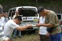 受付では参加記念品までいただき、早速ホクホク顔の参加選手たちです ^^