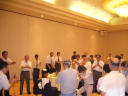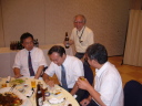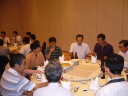 初めはテーブルに着いていたメンバーも座が和むにつれて徐々に移動。