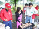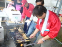 屋外のBBQ(バーベキュー)エリアでは焼鳥・焼肉の準備が進められていました。