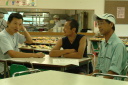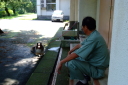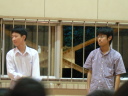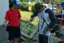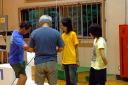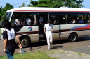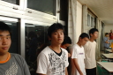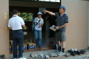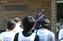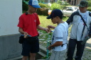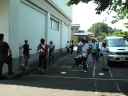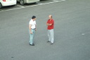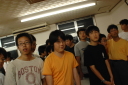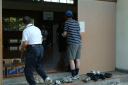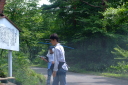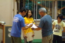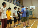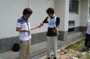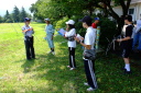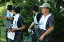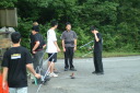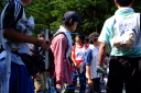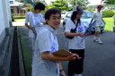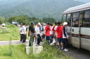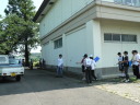 朝食をすませたら宿舎前に集合して最終確認事項の連絡です。
