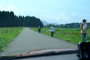 宿舎より数キロ離れた赤坂小学校がスタート地点です。