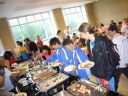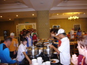 朝食会場に降りてみると既に満員状態で各国選手で満員状態でした。