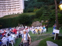 宿舎に戻るとすぐに夕食。会場は屋外のガーデンでした。