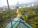 大阪城公園を横断して天守閣の裏側に到着。各フロアを見学しながら最上階の展望台まで登りました。