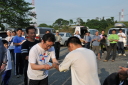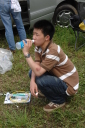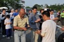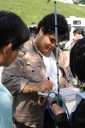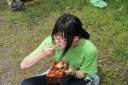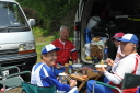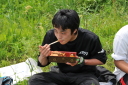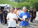 フィニッシュエリアで待っていたのは地元の上毛新聞の取材と、恒例「登利平とり飯弁当」でした。
