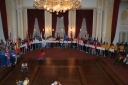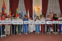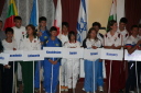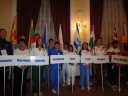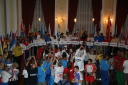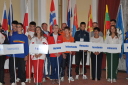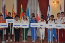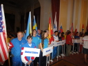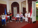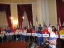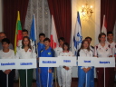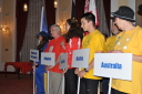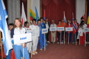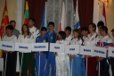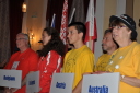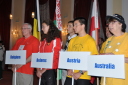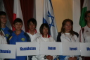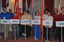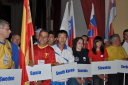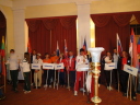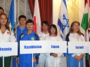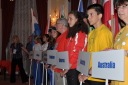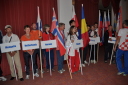 プラカードと国旗を持った代表者がアルファベット順に次々と会場に姿を現し、皆の拍手を浴びました。