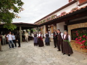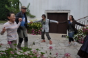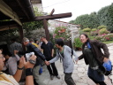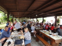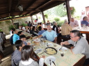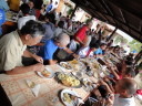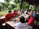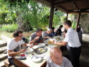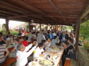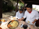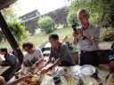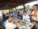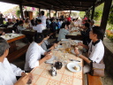 時間は15時近く、やっと昼食です。またまたバスで少し移動したて農村風景となったところで会場に到着しました。