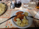 メニューはターキー・ソーセージ・ポテト・キャベツの酢漬けにワインです。