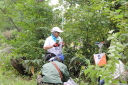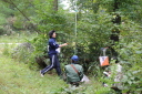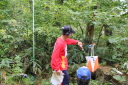 <10/19>エキシビション大会(3.5MHz帯競技) ・3.5MHz帯競技 高台から下る林道がスタート走行コースで、まずは平地に出てからの探索開始です。 反射のない3.5MHz帯ですが、道路沿いの電線をうまく避けての探査です。 主に南西方向のエリアをまわって自然の家に戻るという高速周回コースでした。 途中TX5のSIステーションにトラブルが発生したのですが、 スタッフによる迅速な予備器への交換と、その後の対処により競技は無事に成立しました。