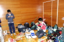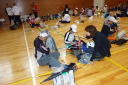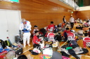 体育館では既に多くの選手が雨対策に余念がありませんでした。