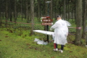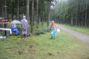 【10月19-20日】 2013全日本ARDF競技大会@富山県砺波市 多くの写真をJP3EVM植木氏よりいただきました。ありがとうございました。 <10/20>本大会(144MHz帯競技) ・フィニッシュ ゴールは丘陵地帯を越えた裏側にある森のなかでした。 微妙に緩やかな登りになっているゴール走行コースに、設定者の芸の細かさを感じました^^;